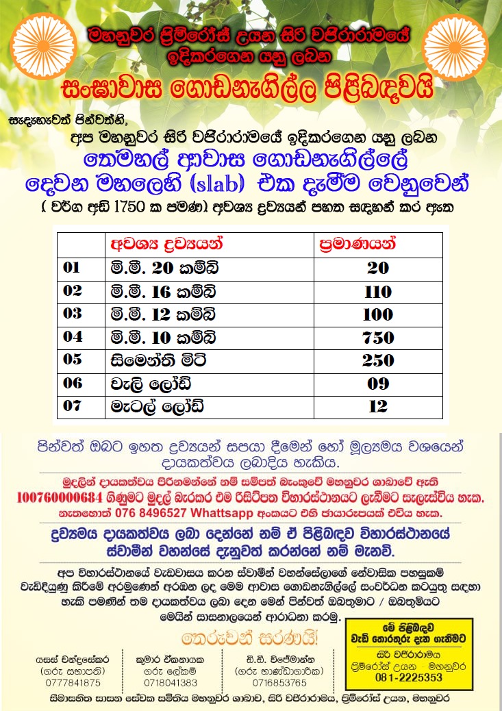 Dhamma Projects Residence Expansion Residence Expansion project is underway to accommodate more novice monks in the temple and pirivena. Latest updates will be shared here. Progress by February 2024 Progress by November 2023 Progress by September 2023